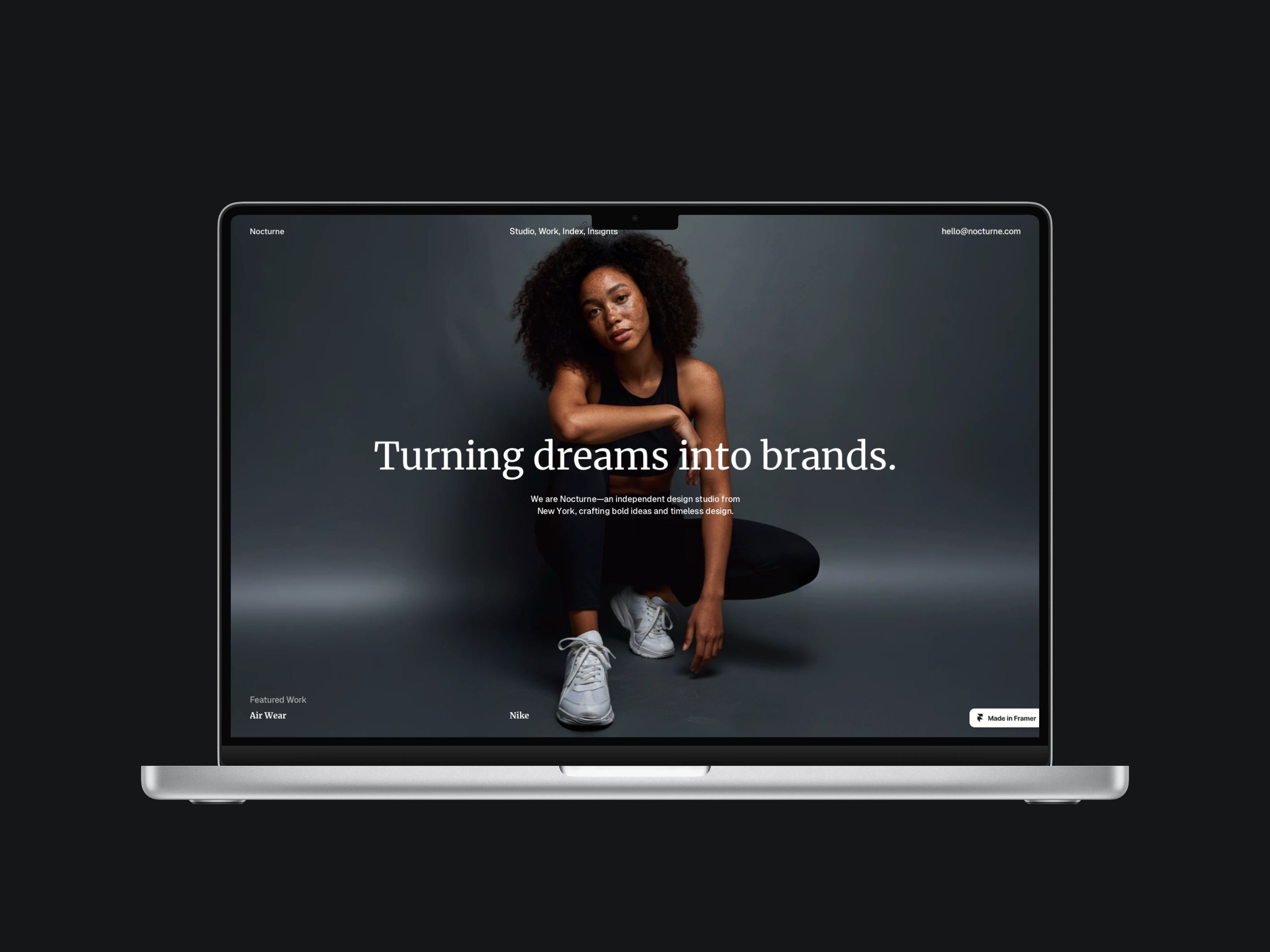 Preview Meet Nocturne — A Framer template to set up your design studio and scale your business with ease. It features a sleek and minimalist design, perfect for studios and creatives who want to showcase their work with style and professionalism. Pages HomeStudioWork (CMS)Work DetailsIndexInsights (CMS)Insights Details Support Color stylesFont stylesLifetime UpdatesEmail Support Exclusive Offer Get 3 months of Framer Pro (annual plan) for free using code partner25proyearly and signing up here. If you have any questions prior to completing your order or need help editing the template don’t hesitate to reach out. Contact us at [email protected]