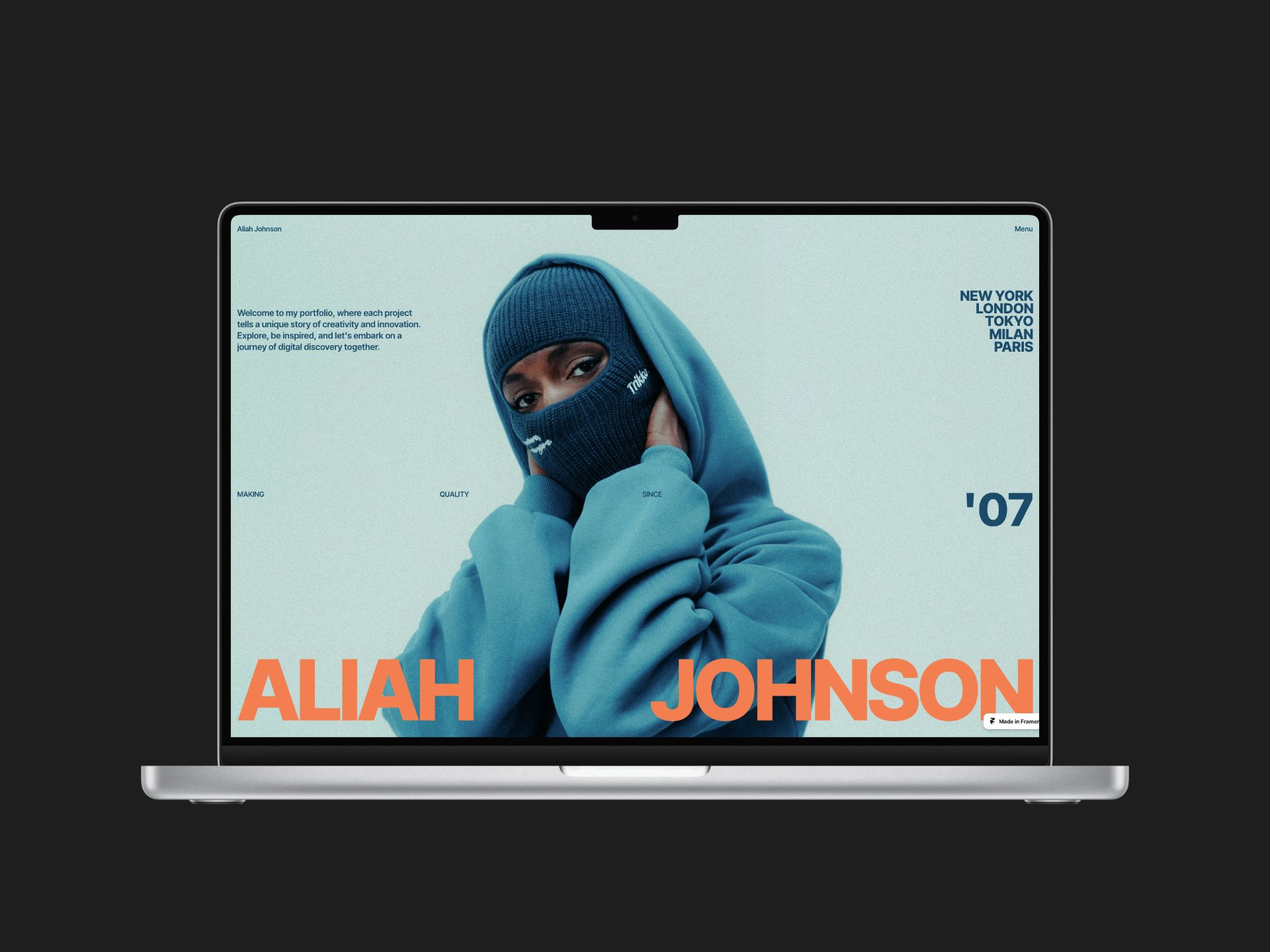 Preview Meet Aliah Johnson — A timeless and stylish portfolio template for Framer creatives. Showcase your work in the most captivating way possible with one of the three Hero intros featuring bold typography, a Swiss grid and a stunning portrait photo of yourself. Features 3 Different Hero Intro’s featuring bold typography and Swiss grids.Projects CMS + FilterStories CMS + FilterAbout PageCustom interactionsSmooth AnimationsSimple but advanced components Support GuidelinesColor StylesFont StylesLink StylesLifetime Updates Exclusive Offer Get 3 months of Framer Pro (annual plan) for free using code partner25proyearly and signing up here. If you have any questions prior to completing your order or need help editing the template don’t hesitate to reach out. Contact us at [email protected]